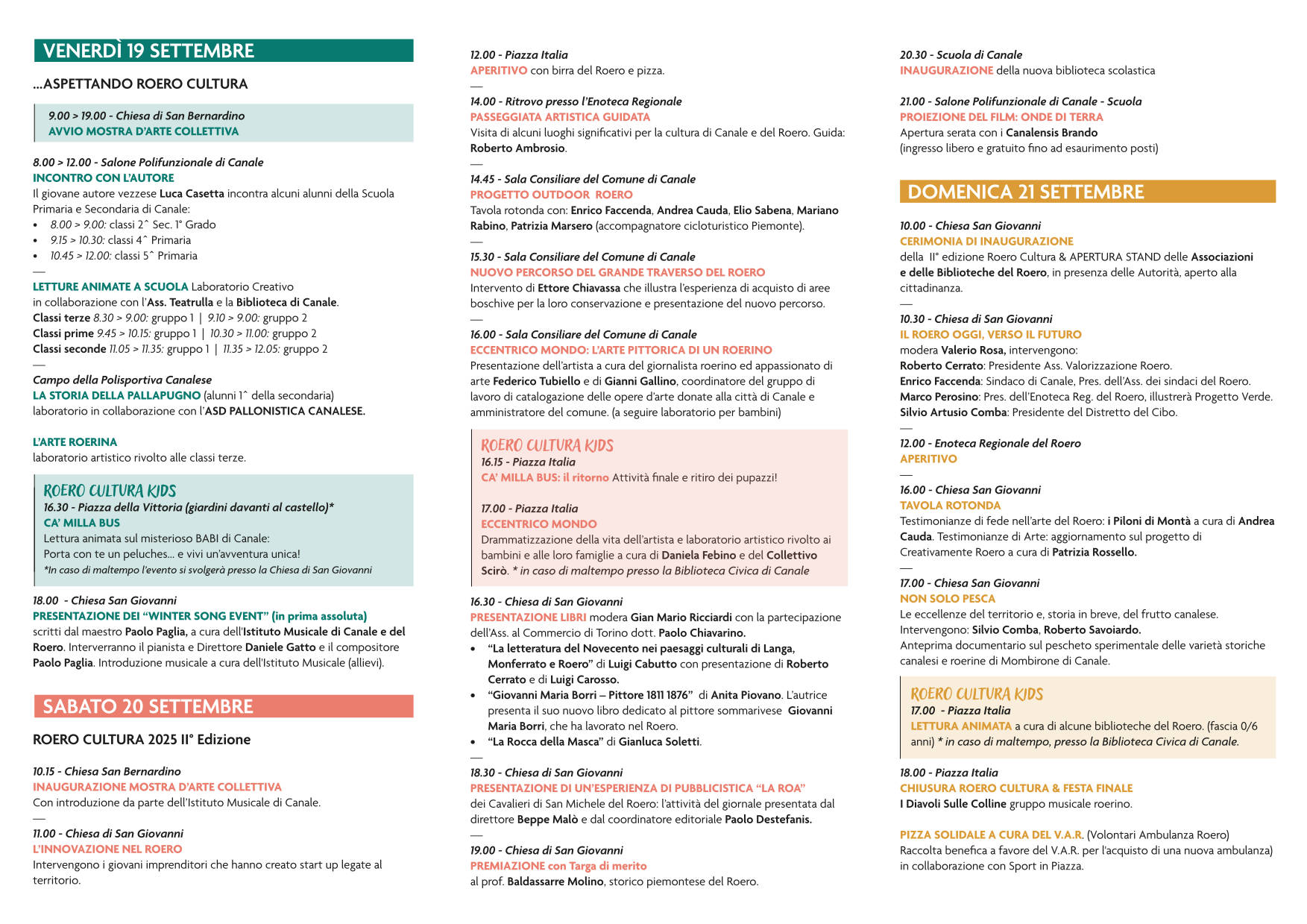 ROERO CULTURA - 19-20-21 Settembre a Canale (Cn)